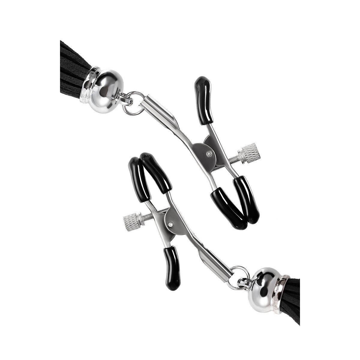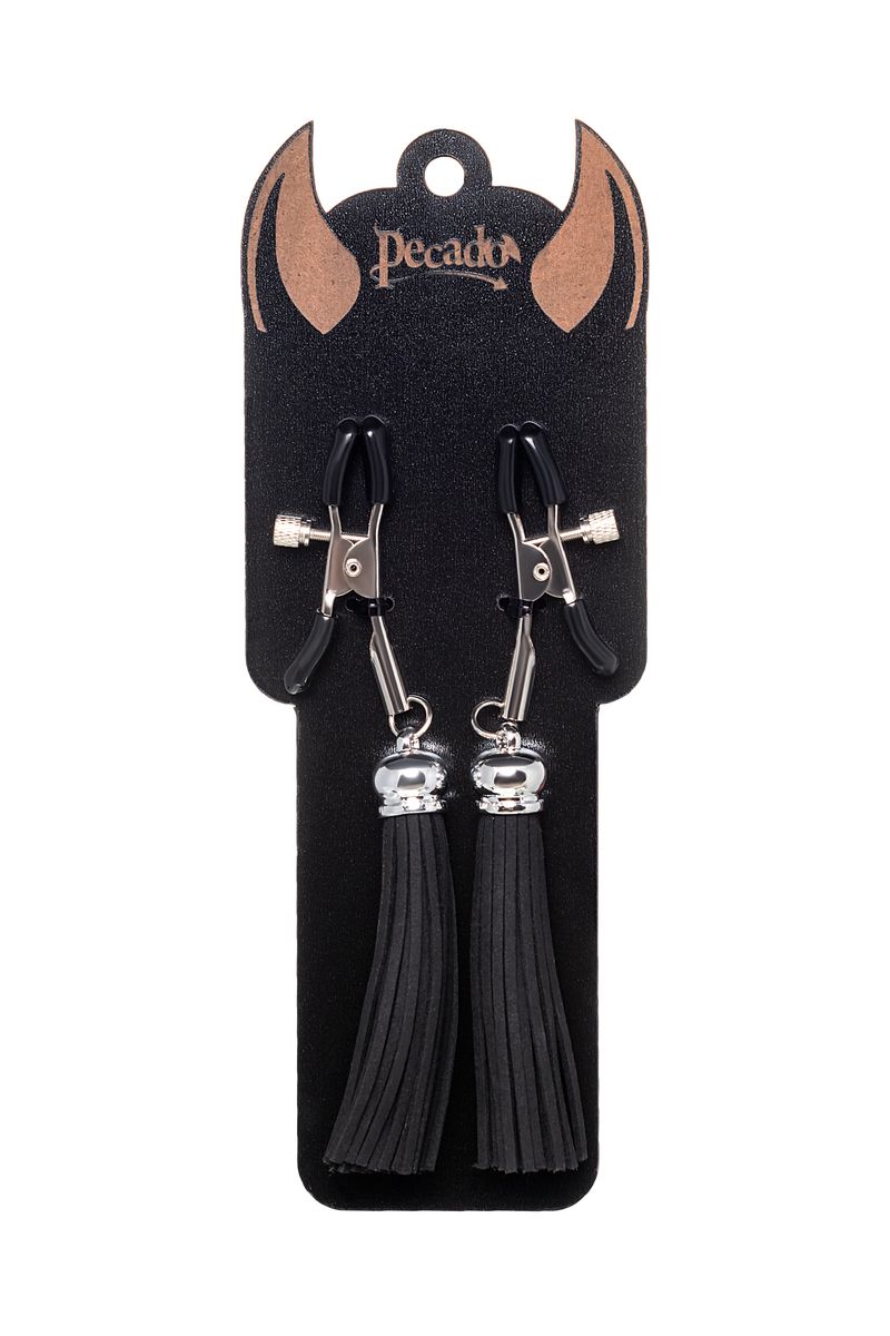 Хотите усилить ощущения от страстных игр с партнером? Увеличить степень возбуждения до невозможного можно с помощью зажимов-прищепок ручной работы от Рecado. Невероятно сексуальный аксессуар пробудит фантазию и повысит чувственность эротических зон. Мягкие резиновые накладки оберегают соски от повреждений. Металлический винт регулирует степень сжатия зажимов: от нежно-приятного до сильно-грубого. На концах черные резиновые наконечники, для безопасного воздействия на нежные участки тела. Компактный размер удобно вмещается как в женскую, так и в мужскую руку. Кисточки из натуральной замши не только визуально украшают эротический атрибут, но и еще утяжеляют его. Для самых смелых и искушенных любителей доминировать и подчиняться.● Ручная работа.● Надежная высококачественная фурнитура. Длина кисточки - 8,5 см.